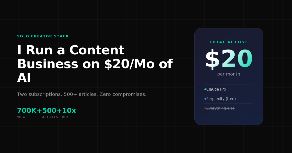 I Run a Content Business on $20/Month of AI — Here's My Exact Stack